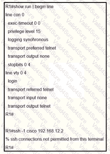 A user cannot SSH to the router. What action must be taken to resolve this issue?