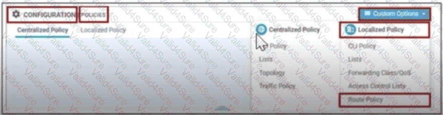 The SD-WAN network is configured ÂÂÂwith a default full-mesh topology. The SD-WAN engineer wants the Barcelona WAN Edge to use the MPLS TLOC when forwarding Telnet traffic based on a configured SLA class list. Which configured must the engineer use to create a policy to call the SLA class and set the preferred color to MPLS?
