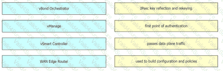 Drag and drop the Cisco SD-WAN components from the left onto their functions on the right.