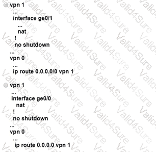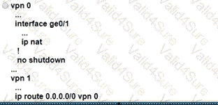 Refer to the exhibit Which configuration sets up direct Internet access for VPN 1?