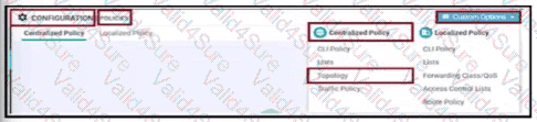 The SD-WAN network is configured with a default full-mash topology. An engineer wants Barcelona and Paris to communicate to each other through the London site using a control Which control policy configuration accomplishes the task?