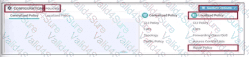 Drag and drop the actions from the left into the correct sequence on the right to create a data policy to direct traffic to the Internet exit.
