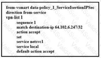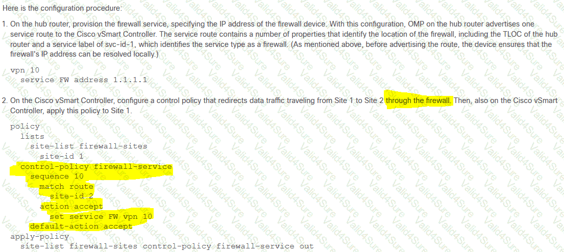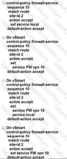 Refer to the exhibit, Which configuration routes Site 2 through the firewall in Site 1?