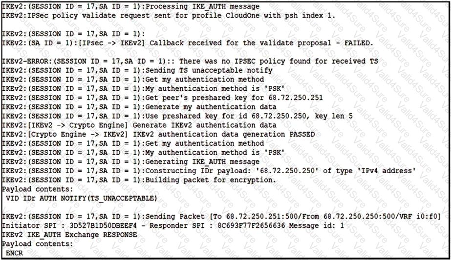 A site-to-site tunnel between two sites is not coming up. Based on the debugs, what is the cause of this issue?
