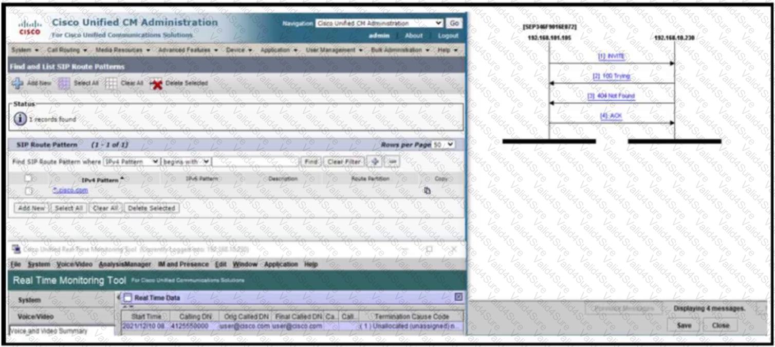 Refer to the exhibit. A collaboration engineer is troubleshooting a Cisco UCM issue where users report that calls placed to the domain cisco.com are failing and calls to sip.cisco.com are working. Which action resolves the issue?