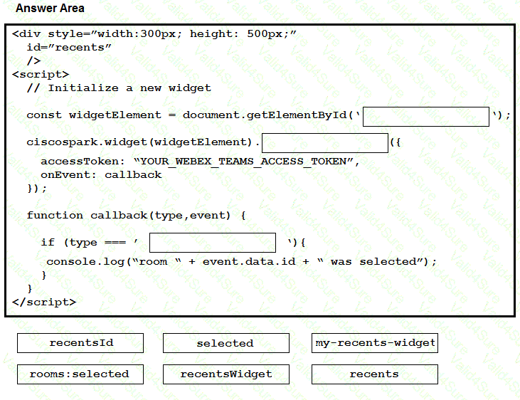 Drag and drop the code to create a Webex Teams Recents Widget in an existing HTML page. Not all items are used.