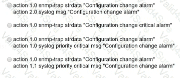 Refer to the exhibit. A network engineer must be notified when a user switches to configuration mode. Which script should be applied to receive an SNMP trap and a critical-level log message?