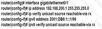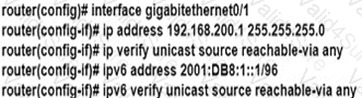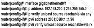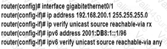 An engineer working for a private telecommunication company with an employe id:3948:613 needs to limit the malicious traffic on their network. Which configuration must the engineer use to implement URPF loose mode on the GigabitEthernet0/1 interface?