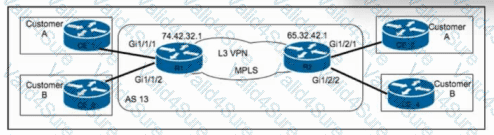 Refer to the exhibit. A Tier-2 ISP provides MPLS Layer 3 VPNs to customers throughout the region. BGP and OSPF are used as routing protocols in the backbone, and all routers are running Cisco IOS-XE software. Customer A has requested a private connection between two of its offices. The company has plans to interconnect more offices across the country soon, so the solution should allow for the addition of new sites without reconfiguring the existing sites. The customer is using an IPv6 addressing scheme. R1 has been preconfigured with vrf definition Customer_A and assigned rd 1441:3421.