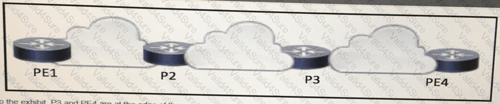 P3 and PE4 are at the edge of the service provider core and serve as ABR routers Aggregation areas are on either side of the core.
