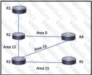 An engineer has started to configure a router for OSPF, as shown Which configuration must an engineer apply on the network so that area 15 traffic from R5 to R1 will prefer the route through R4?