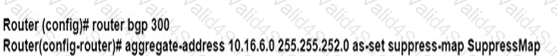 An engineer is implementing BGP selective prefix suppression. The router must advertise only 10.16.4.0/24,10.16.5.0/24. and summarized route 10.16.0.0/21. and suppress 10.16.6.0/24. Which configuration must the engineer apply to the router?