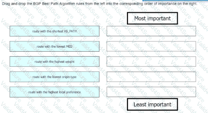 Drag and drop the BGP Best Path Algorithm rules from the left into the corresponding order of importance on the right.