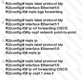 An engineer is configuring two routers to support MPLS LDP sessions between them. The R1 configuration is complete, and work has started on R2 as shown. Which additional configuration must the engineer apply to R2 to complete the task?