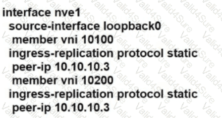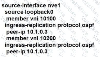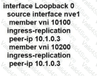 Refer to the exhibit. A network engineer must implement VXLAN between two core switches called CORE_2 and CORE_3. The core switches must have multicast disabled. In addition, the VLAN 100 called APP and VLAN 200 called DB must be extended between the core switches. The initial VXLAN configuration has been completed on CORE_2. Which Network Virtual Interface configuration completes VXLAN configura