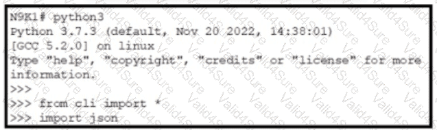Refer to the exhibit A network engineer must use a Cisco on-box Python CLI to configure the BGP AS 65501 on Cisco Nexus 9000 Series Switch The output from the command must be returned as raw output instead of JSON format Which command set must be used to complete the configuration?