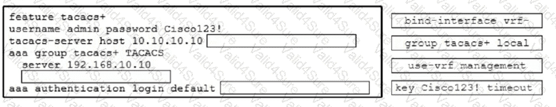 All logins to a Cisco Nexus 9000 Series Switch must pass through the TACACS+ server at IP address 192.168.10.10. The configuration must meet these requirements:
