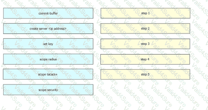 An engineer must configure remote authentication on a Cisco UCS system. The user password must be encrypted before it is sent to the authentication server. The company security policy requires the server to be based on an open standard. Drag and drop the UCS CLI AAA configuration commands from the left into the order in which they must be implemented on the right. Not all commands are used.