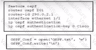 An engineer prepared the configuration of OSPF in a text file named OSPF.txt. The engineer decided to remove all OSPF configurations. Which Python code must be added to accomplish this goal?