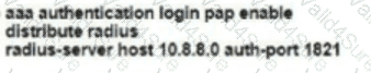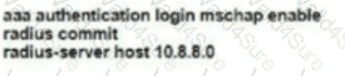 The RADIUS server is already defined. Which command set completes the configuration?