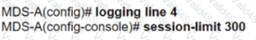 A network engineer needs to configure system logging on the Cisco MDS Series Switch. The messages must be displayed with the severity level of "warning" and above. For security reasons, the users must be logged out of the console after 5 minutes of inactivity. Which configuration must be applied to meet these requirements?
