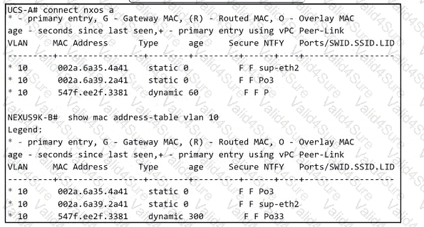 Refer to me exhibit An engineer is troubleshooting a connectivity issue for a VM with MAC address 00:50:56:88:10:14 running on me cisco UCS-8 Series blade in VLAN 10. Cisco DCS Manager is connected to a Cisco nexus 9000 Series switch over port channel 10. Currently, the VM Is unreachable from any source that Is outside of me Cisco UCS domain. Which action musà be takenlo allow me VM to be readable?