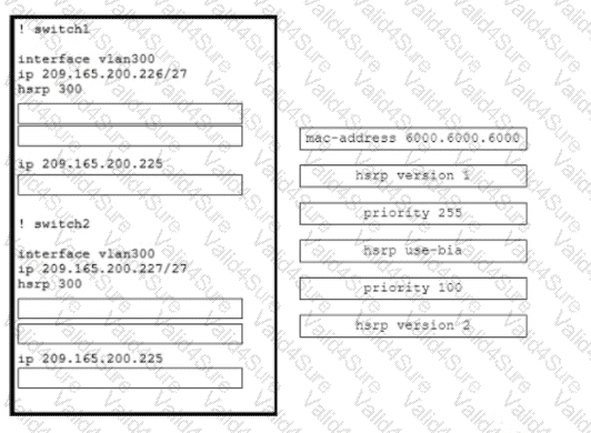 Drag and drop the commands from the the right to complete a configuration of the HSRP on the left. The commands are used more than once. Not all commands are used
