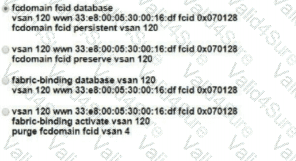An engineer is performing a configuration on a Cisco Nexus 5000 Series Switch. The requirement is for the current Fibre Channel IDs in VSAN 120 to be saved across reboots. The Cisco environment also must integrate with a third-party solution that requires persistent Fibre Channel IDs for the VSAN. The WWN of the Cisco switch must be 33:e8:00:05:30:00:16:df and its Fibre Channel ID 0x070128. Which command set meets these requirement?