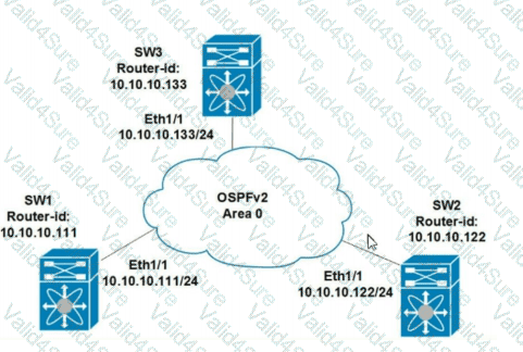 Refer to the exhibit. All switches are configured with the default OSPF piority.Which configuration should be applied to ensure that the SW2 Cisco Nexus switch controls the LSA floods and advertises the network to the remaining nodes m the OSPFv2 area?