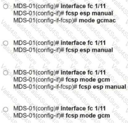 A storage engineer must configure Cisco TrustSec Fibre Channel by using manual ESP mode on a Cisco MDS 9000 Series Switch. ESP mode must use the default message authentication and encryption method. Which configuration must the engineer apply on the switch to complete the configuration?