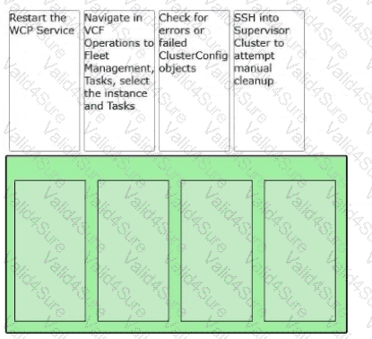 An administrator upgrades a VMware Cloud Foundation (VCF) Supervisor and the upgrade fails. Order the steps the administrator should take to determine the cause of the failure.
