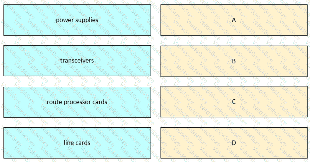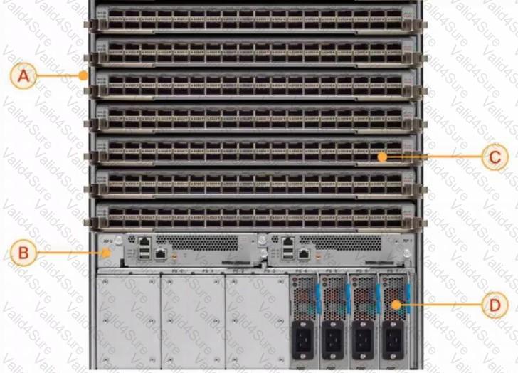 Refer to the exhibit. Drag and drop the names of the field-replaceable units from the left onto the corresponding letters on the image of the Cisco NCS 5500 Series modular router.