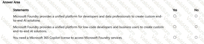 - For each of the following statements, select Yes if the statement is true. Otherwise, select No.