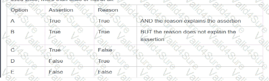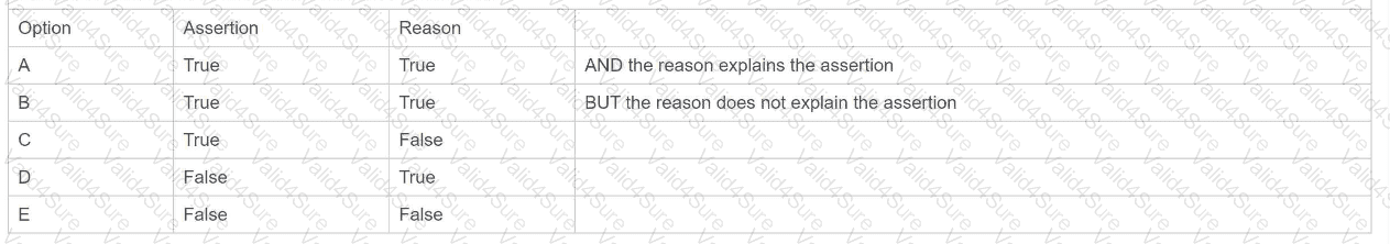Lines 1 to 5 in the table below consist of an assertion statement and a reason statement. For each line identify the appropriate option, from options A to E, that applies.