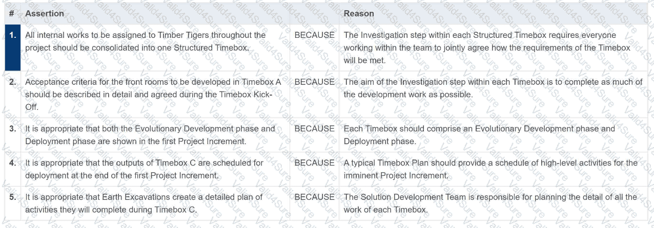 4. It is appropriate that the outputs of Timebox C are scheduled for deployment at the end of the first Project Increment.