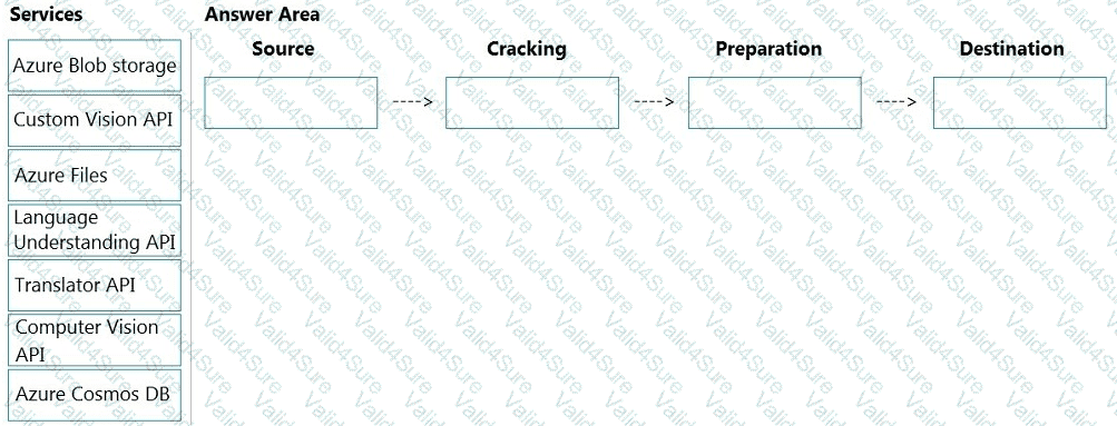 How should you complete the skillset design diagram? To answer, drag the appropriate services to the correct stages. Each service may be used once, more than once, or not at all. You may need to drag the split bar between panes or scroll to view content.