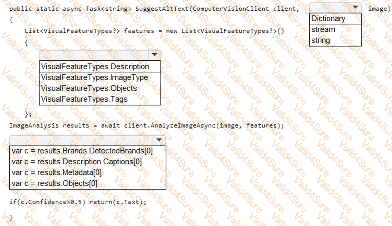 How should you complete the code? To answer, select the appropriate options in the answer area.