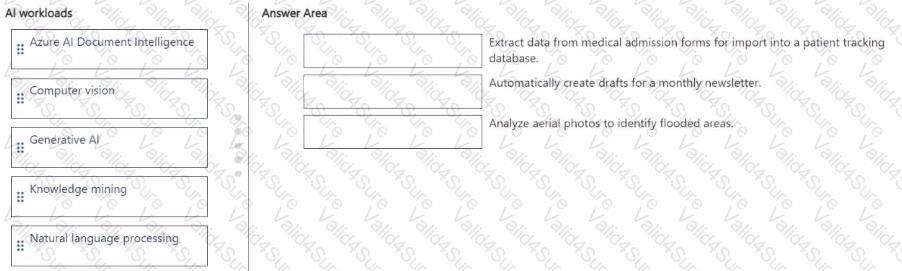To answer, drag the appropriate Ai workload from the column on the left to its task on the right. Each workload may be used once, more than once, or not at all.