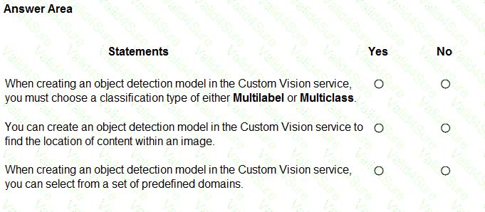 For each of the following statements, select Yes if the statement is true. Otherwise, select No.