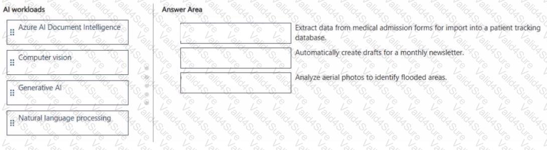 To answer, drag the appropriate Al workload from the column on the left to its task on the right. Each workload may be used once, more than once, or not at all