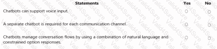 For each of the following statements, select Yes if the statement is true. Otherwise, select No.