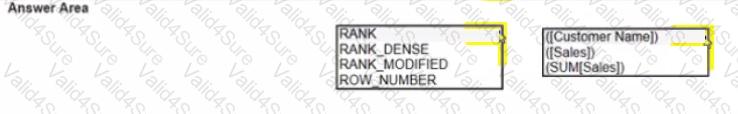 How should you complete the formula? (Use the dropdowns in the Answer Area to select the correct options to complete the formula ?