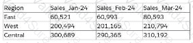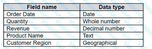 You have a table that contains four columns named Order Date, Country, Sales, and Profit.