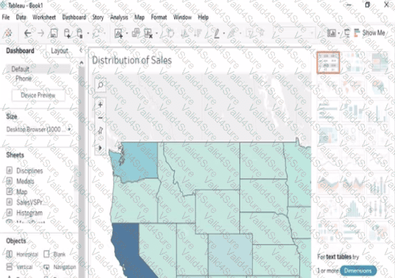Add the Sales by State sheet in a Show/Hide button to the right side of the dashboard.