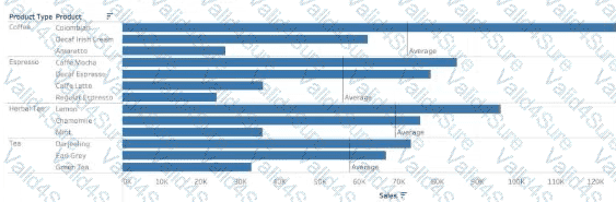 The analyst wants to make this more visually appealing by coloring the bars based on whether they are above or below the Average Sales within each Product Type.