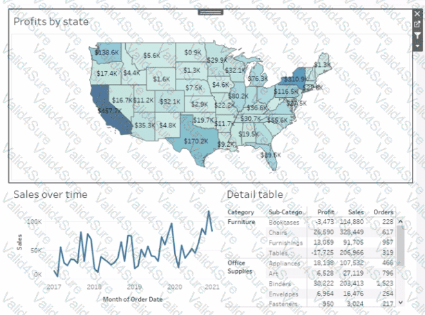 Several Lays later, you decide that you want to filter both Sales over time and Detail table by selecting a data point on the map.