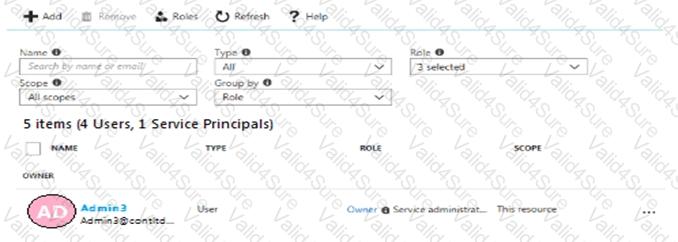 The tenant is associated to an Azure subscription. Access control for the subscription is configured as shown in the Access control exhibit. (Click the Exhibit tab.)
