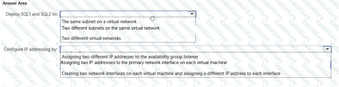 You need to configure networking for SQL1 and SQL2. The solution must meet the following requirements: