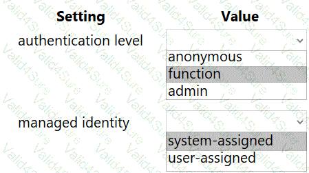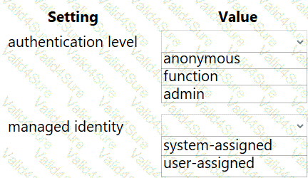 Which configuration values should you use? To answer, select the appropriate options in the answer area.