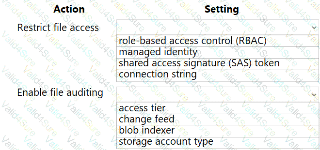 Which Azure Blob storage settings should you use? To answer, select the appropriate options in the answer area.